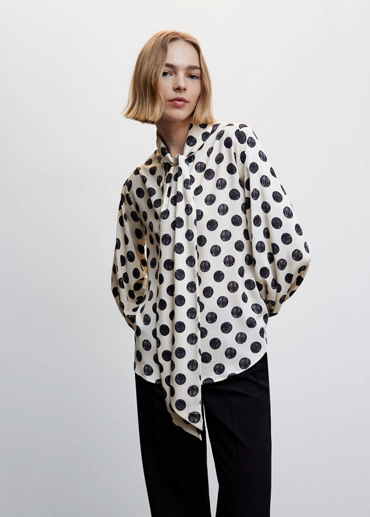 Bow polka-dot blouse