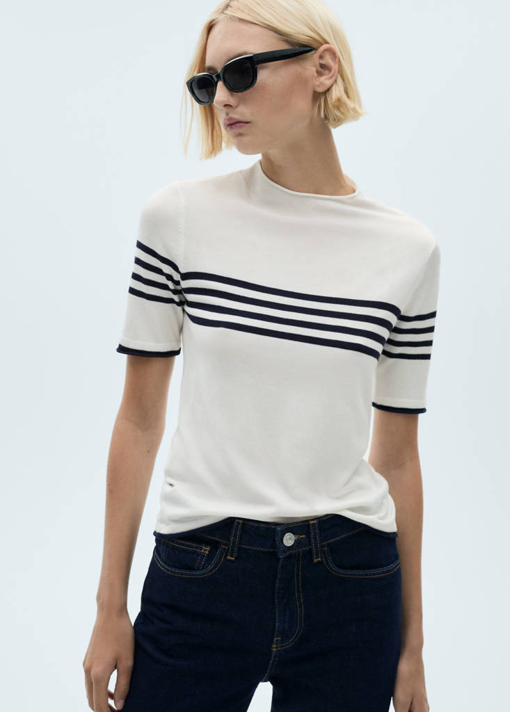 Striped fine-knit sweaterPrice historyInitial price struck through [€ 22,99 ]€ 22,99Second price struck through [€ 17,99 ]€ 17,99Current price [€ 5,99 ]€ 5,99-74%Select a colourEcruSelect your sizeXXSNot available. I want it!XSNot available. I want it!SNot available. I want it!MNot available. I want it!LNot available. I want it!XLNot available. I want it!XXLNot available. I want it!1XLNot available. I want it!2XLNot available. I want it!3XLNot available. I want it!4XLNot available. I want it!DimensionsNotify meFine knit fabric. Straight design. Round neck. Short sleeves. Available Plus. Striped designDetails, composition and careStore availability