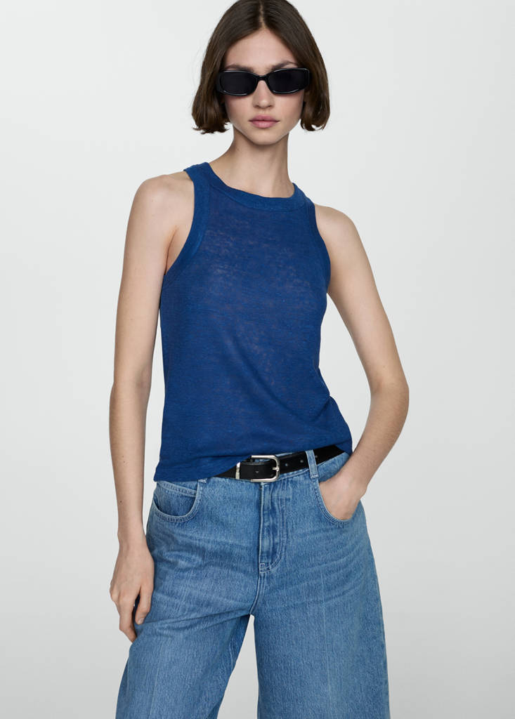 100% Linen. Slim fit. Straight design. Round neck. Sleeveless. Wide straps. No Fastening