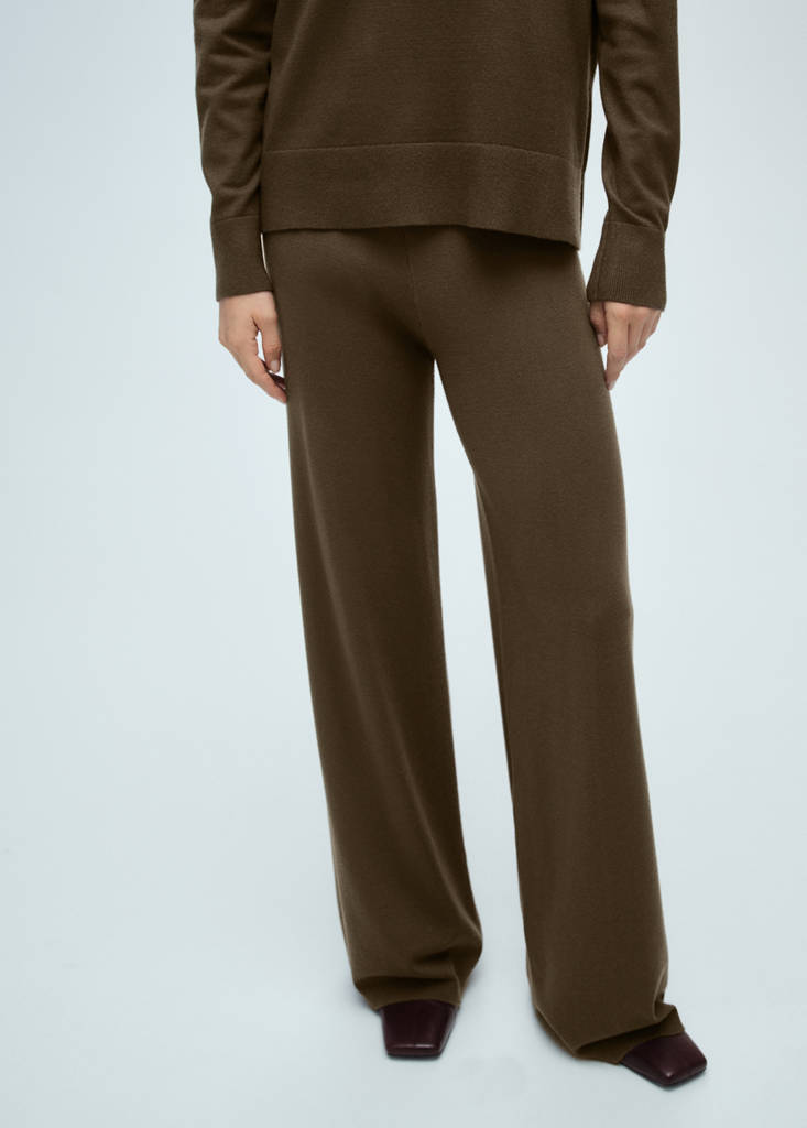 Fine knit fabric. Straight design. Long design. High waist. Elasticated waistband. Total look. No Fastening. Elastic band. Wide-leg design