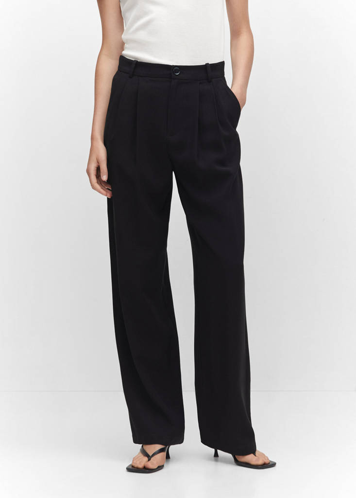 Wide leg pleated trousersPrice historyInitial price struck through [€ 49,99 ]€ 49,99Current price [€ 33,99 ]€ 33,99-32%Select a colourBlackLarge garment - Choose one size down from the usualSelect your size32Not available. I want it!34Not available. I want it!36Not available. I want it!38Not available. I want it!40Not available. I want it!42Not available. I want it!44Not available. I want it!Notify meStraight design. Mid-rise. Zip fastening. Dart detail. The colour black is exclusively online. Office looksDetails, composition and careStore availability