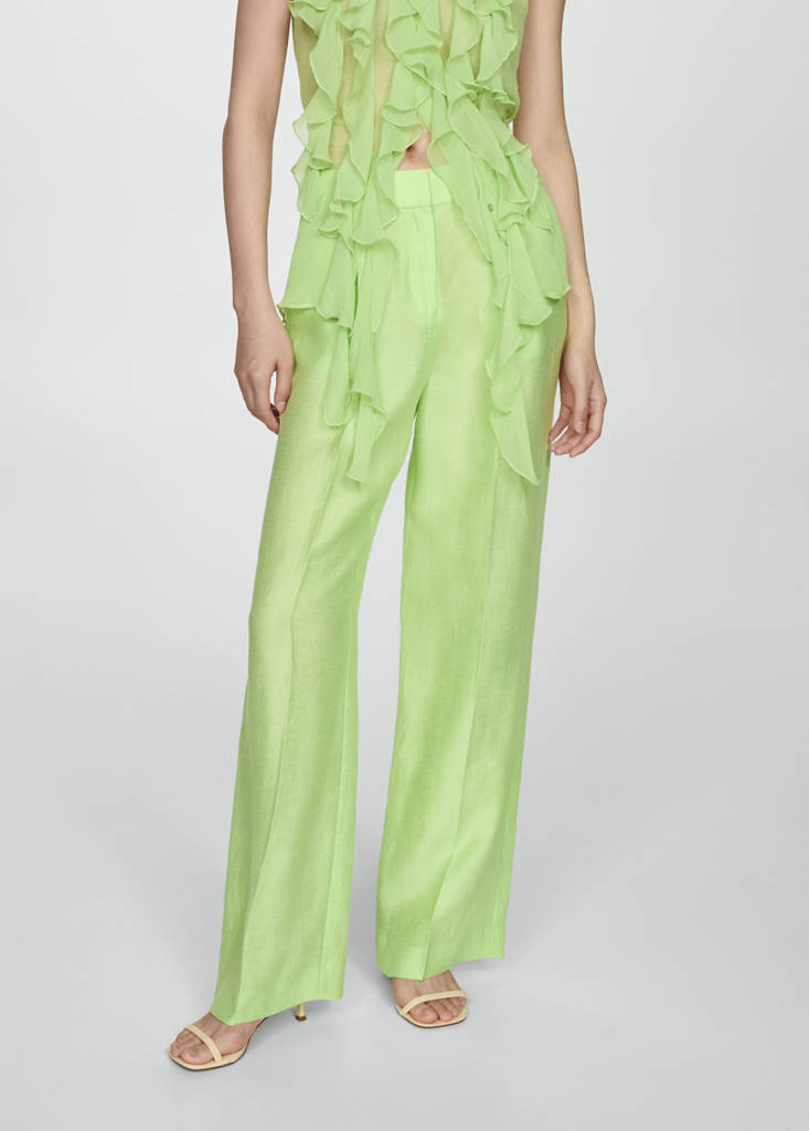 Linen and lyocell blend fabric. Mid-rise. Long design. Wide-leg design. Two side pockets. Concealed button, hook and zip fastening. Party, ceremony and communion collection