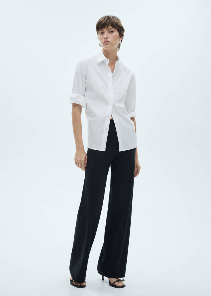 Cotton blend fabric. Long design. Wide-leg design. Fine knit fabric. Elasticated waistband. Total look. Mid-rise