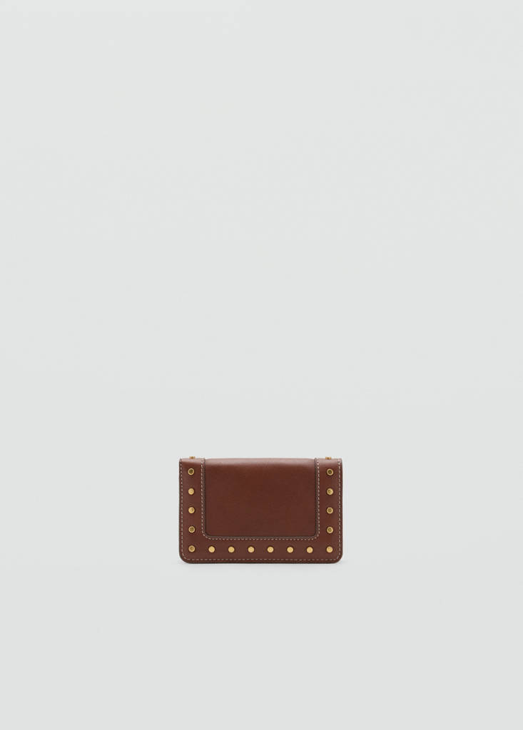 Small size. Faux leather. Stud detail. Interior pocket with zip closure. Central compartment for banknotes. Multiple card slots. Flap closure with snap button. Inner lining