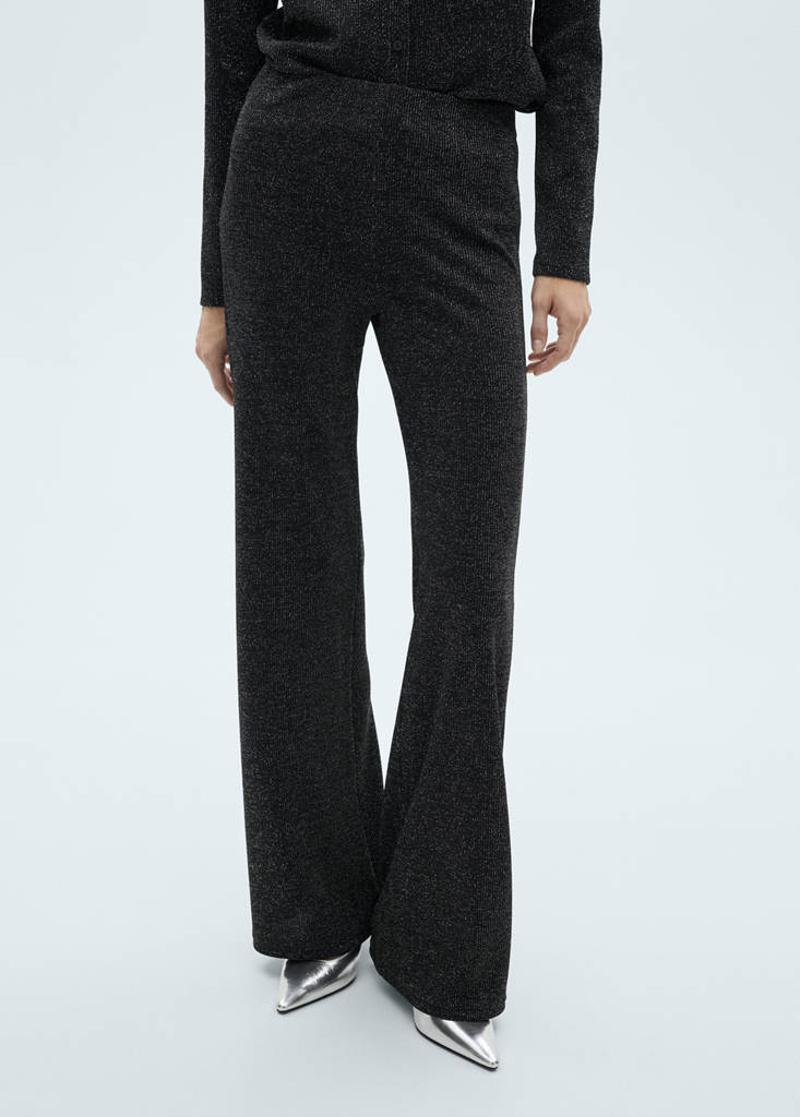 Gebreide lurex broek met wijd uitlopende pijpen