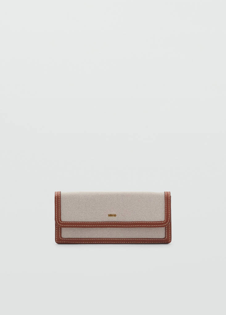 Raffia-effect. Groot formaat. Rechthoekig ontwerp. Contrasterende ribbels. Reliëflogo. Binnenzak met rits. Klepsluiting met drukknoop. Binnenvoering