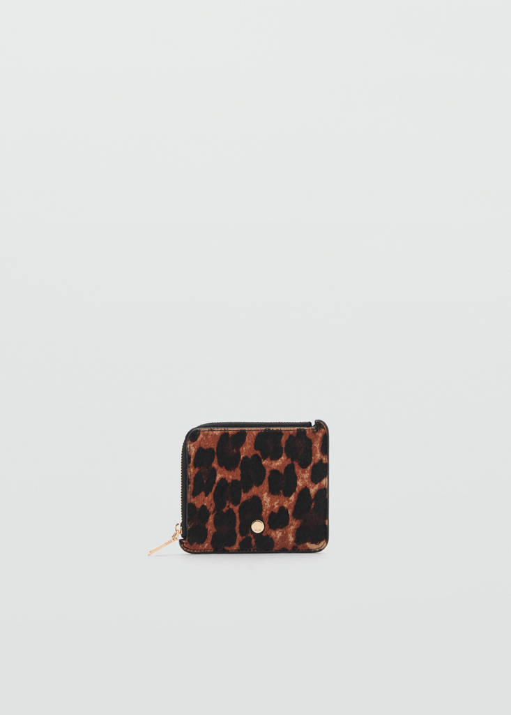100% runderleer met haar. Klein formaat. Dierenprint. Luipaardprint. Ritssluiting. Reliëflogo. Voering. Meerdere kaartsleuven