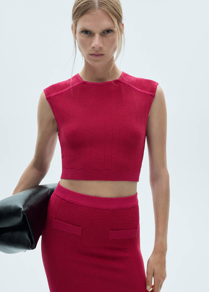 Gebreide mouwloze topPrijsgeschiedenisOorspronkelijke prijs doorgehaald [€ 39,99 ]€ 39,99Tweede prijs doorgehaald [€ 26,99 ]€ 26,99Huidige prijs [€ 8,99 ]€ 8,99-78%Kies een kleurFuchsiaHet model draagt maat S en is 177cm lang.Kies je maatXSNiet op voorraad, maar ik wil hem hebben!SNiet op voorraad, maar ik wil hem hebben!MNiet op voorraad, maar ik wil hem hebben!LLaatste eenheden!XLNiet op voorraad, maar ik wil hem hebben!ToevoegenRonde hals. Mouwloos. Sierstiksels. Cropdesign. Fijn breisel. Total lookDetails, samenstelling en verzorgingVoorradig in de winkel