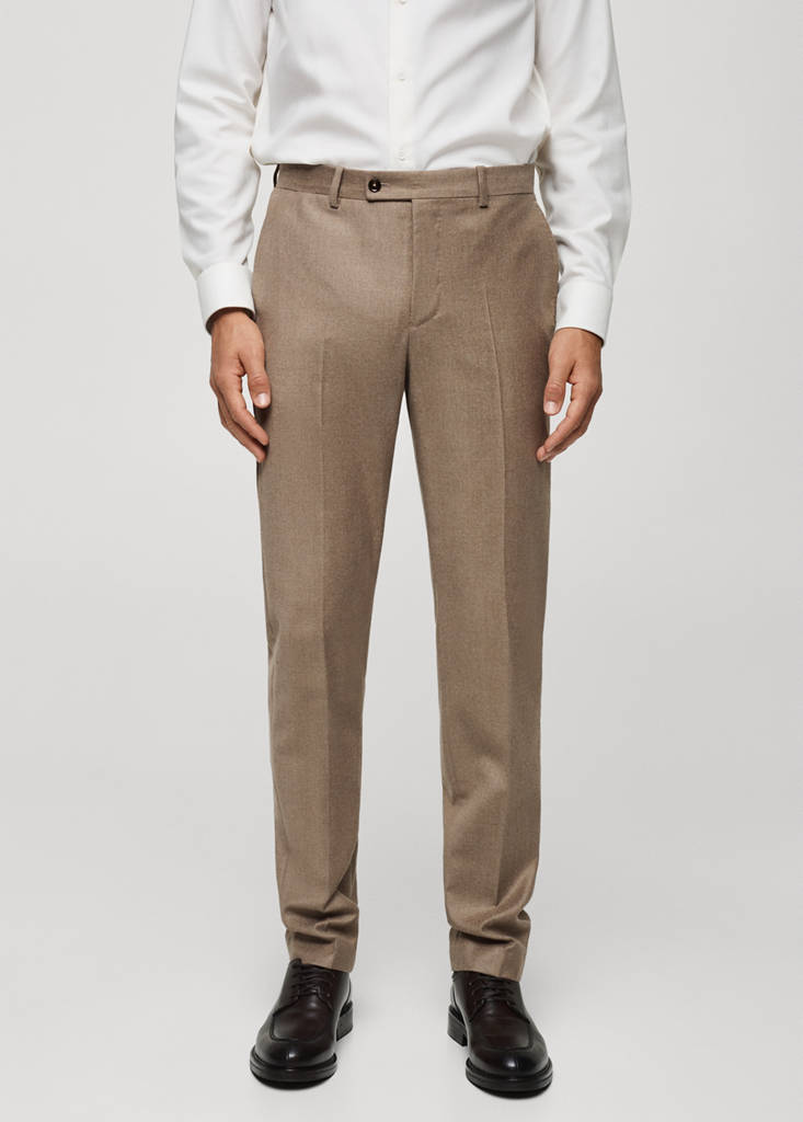 Slim-fit. Rits-, haak- en dubbele knoopsluiting aan de voorkant. Lussen voor riem. Twee zijzakken. Detail van geperste streep aan de voor- en achterkant. Twee paspelzakken met knoop aan de achterkant. Selection Collectie. Gemaakt in Portugal. Stof van 100% scheerwol van het Italiaanse huis LANEROSSI BY MARZOTTO. Knopen aan de binnenkant van de taille voor bretels