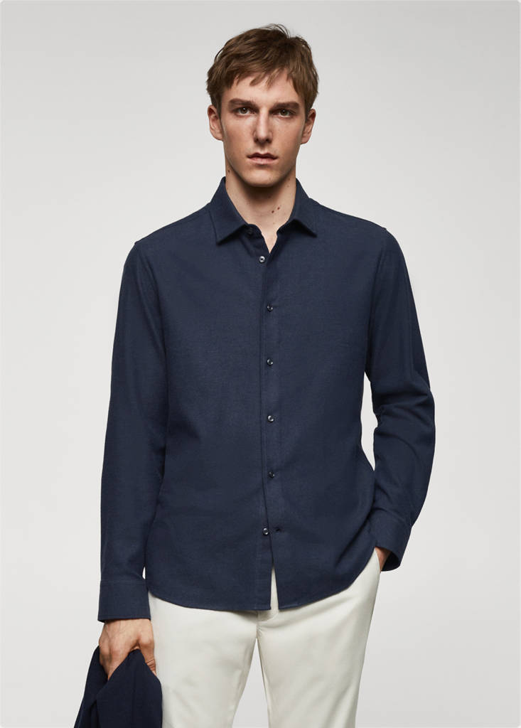 Regular fit. Twill katoenen stof. Overhemdkraag. Lange mouwen met knoopmanchetten. Voorste knoopsluiting. Afgeronde zoom