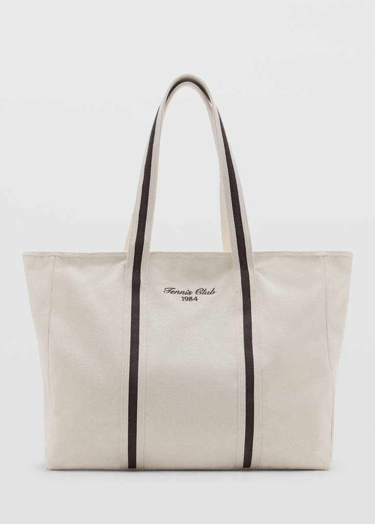 100% katoenen stof. Geborduurde tekst. Contrasterende gekleurde linten