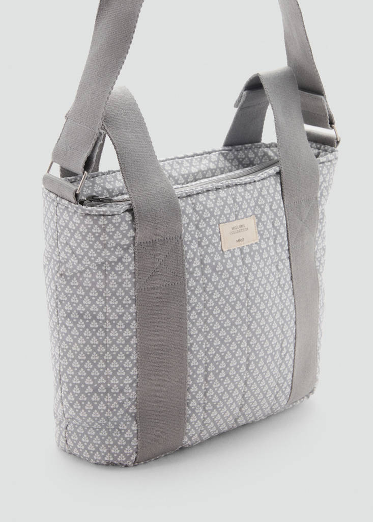 Binnenvoering. Binnenzakken. Gedrukt ontwerp. Twee korte handvatten. Lange verstelbare schouderband. Ritssluiting. Maternity Collection