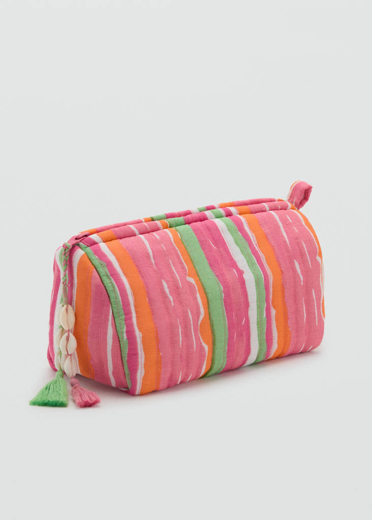 100% katoenen stof. Streepjesprint. Meerkleurig model. Ritssluiting. Binnenvoering. Badkamercollectie