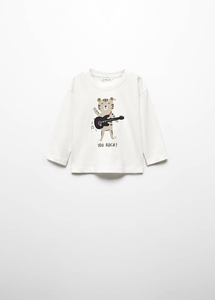 Cotton printed T-shirtPrice historyInitial price struck through [kr 159,00 ]kr 159,00Second price struck through [kr 119,00 ]kr 119,00Current price [kr 19,00 ]kr 19,00-88 %Select a colourOff WhiteSelect your size9-12 months (80cm)Not available. I want it!12-18 months (86cm)Not available. I want it!18-24 months (92cm)Not available. I want it!2-3 years (98cm)Not available. I want it!3-4 years (104cm)Not available. I want it!4-5 years (110cm)Not available. I want it!DimensionsNotify mePrinted message. Image printed on the front. Straight design. Animated design. Round neck. Long sleevesDetails, composition and careStore availabilityItem qualitiesRecycled cottonAt least 20 %This fibre is obtained from pre- and post-consumer textile waste that is transformed into new fabrics.