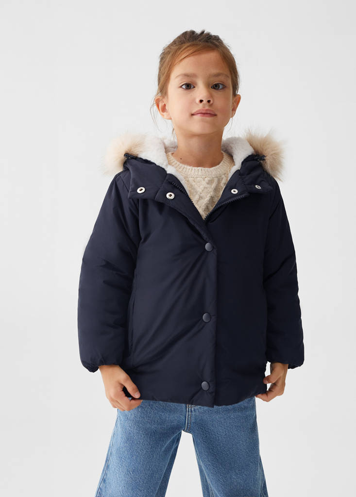 Straight design. Fur-effect lining. Hood. Regular fit. Long sleeves. Hood with synthetic hair detail. Front closure