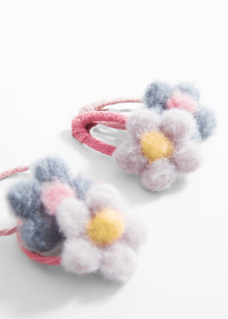 Set of 4. Floral design. Textured. Hair clip. Elastic band