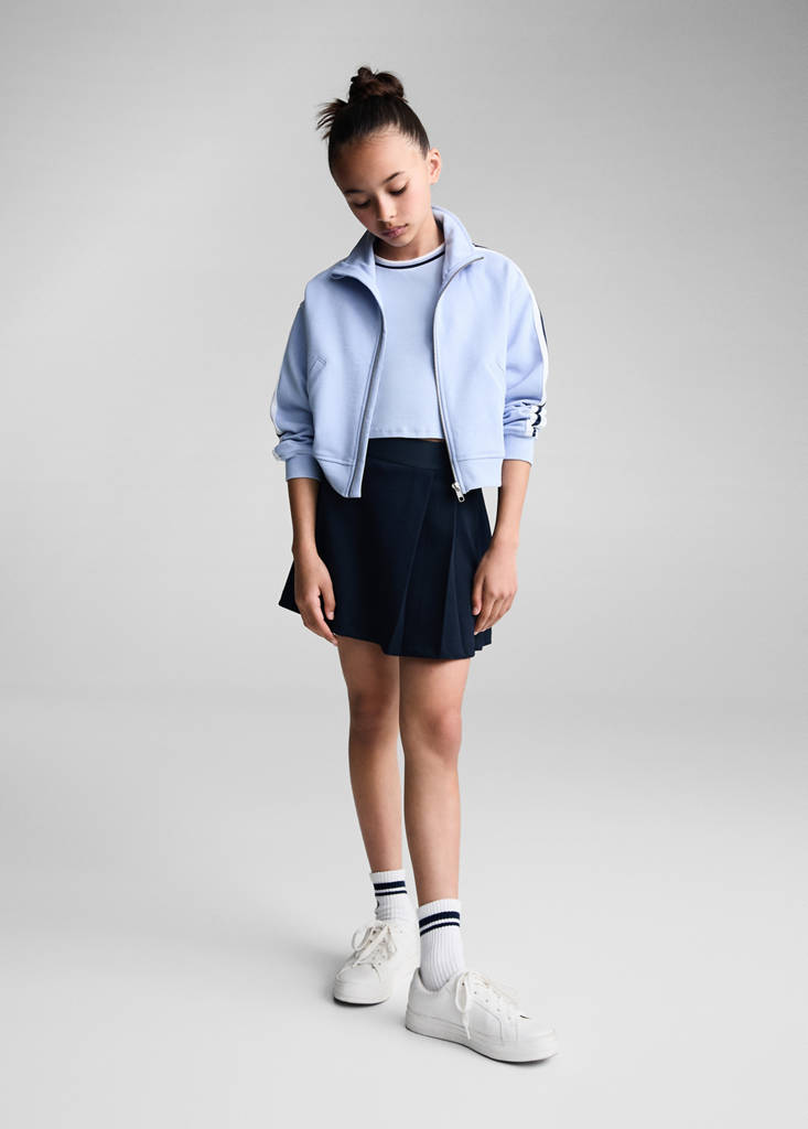 Straight design. High collar. Long sleeves. Two pockets with flaps. Zip fastening