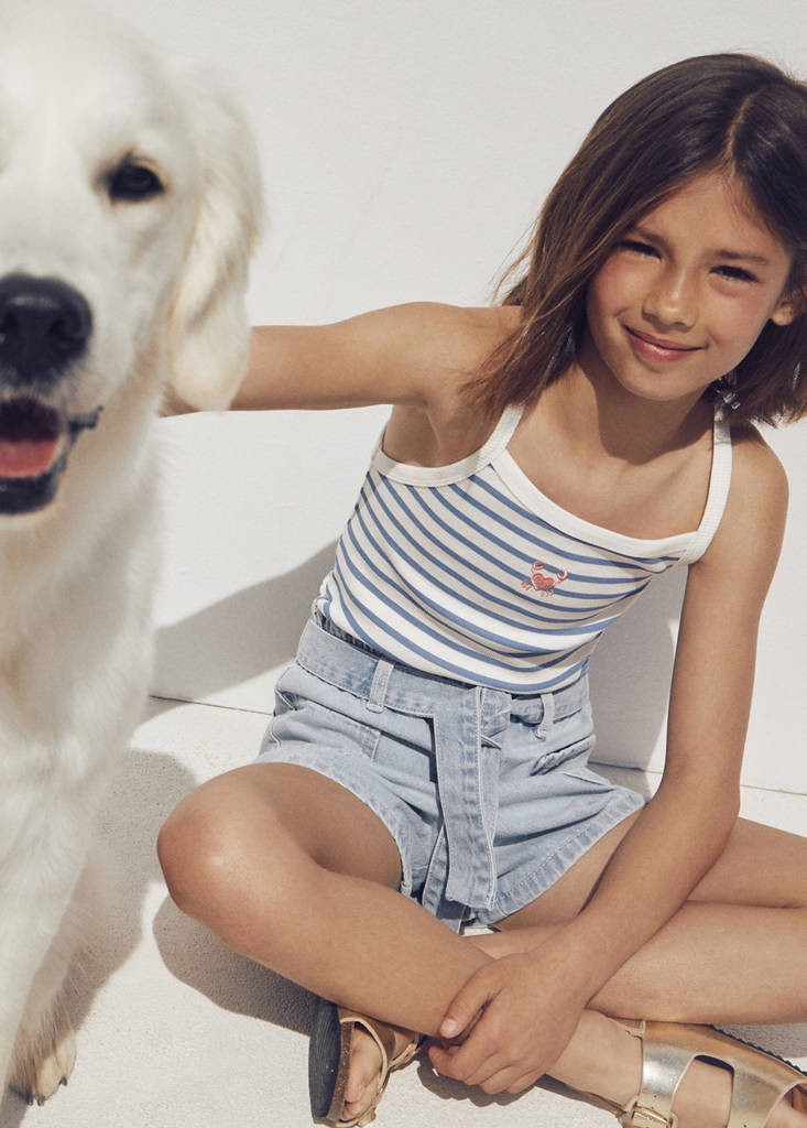Striped strap T-shirtPrice historyInitial price struck through [kr 149,00 ]kr 149,00Current price [kr 119,00 ]kr 119,00-20 %Select a colourChina BlueSelect your size5-6 years (116cm)Not available. I want it!7-8 years (128cm)Not available. I want it!9-10 years (140cm)Last few items!11-12 years (152cm)Not available. I want it!13-14 years (164cm)Not available. I want it!MeasurementsAddEmbroidered message. Crop design. Straight Design. Striped print. Thin straps. Round neck. Sleeveless. Summer campDetails, composition and careStore availabilityItem qualitiesRecycled cottonAt least 20 %This fibre is obtained from pre- and post-consumer textile waste that is transformed into new fabrics.