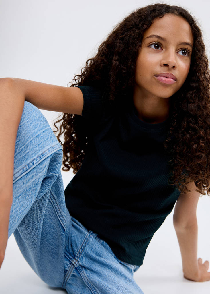 Ribbed cotton T-shirtPrice historyInitial price struck through [kr 149,00 ]kr 149,00Second price struck through [kr 119,00 ]kr 119,00Current price [kr 99,00 ]kr 99,00-34 %Select a colourNavySelect your size5-6 years (116cm)Last few items!7-8 years (128cm)Last few items!9-10 years (140cm)Last few items!11-12 years (152cm)Last few items!13-14 years (164cm)Last few items!MeasurementsAddCotton fabric. Stretch fabric. Ribbed design. Straight Design. Round neck. Short sleevesDetails, composition and careStore availabilityItem qualitiesRecycled cottonAt least 20 %This fibre is obtained from pre- and post-consumer textile waste that is transformed into new fabrics.