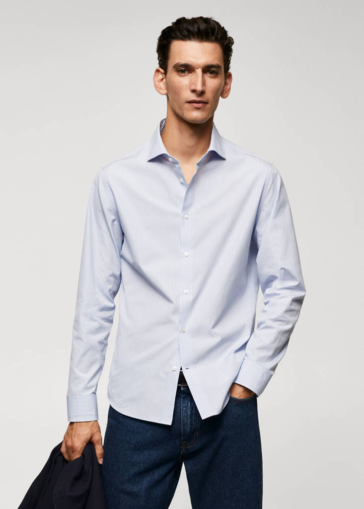 100% cotton slim fit shirtPrice historyInitial price struck through [kr 849,00 ]kr 849,00Current price [kr 679,00 ]kr 679,00-20 %Select a colourBlueThe model is wearing size M and is 188cm tall.Select your sizeXSNot available. I want it!SNot available. I want it!MNot available. I want it!LNot available. I want it!XLNot available. I want it!XXLNot available. I want it!DimensionsNotify meESSENTIALS: Made to last. Poplin fabric made of 100% cotton. Slim fit. Spread collar. Long buttoned sleeves. Rounded base. Front closure with buttonsDetails, composition and careStore availability