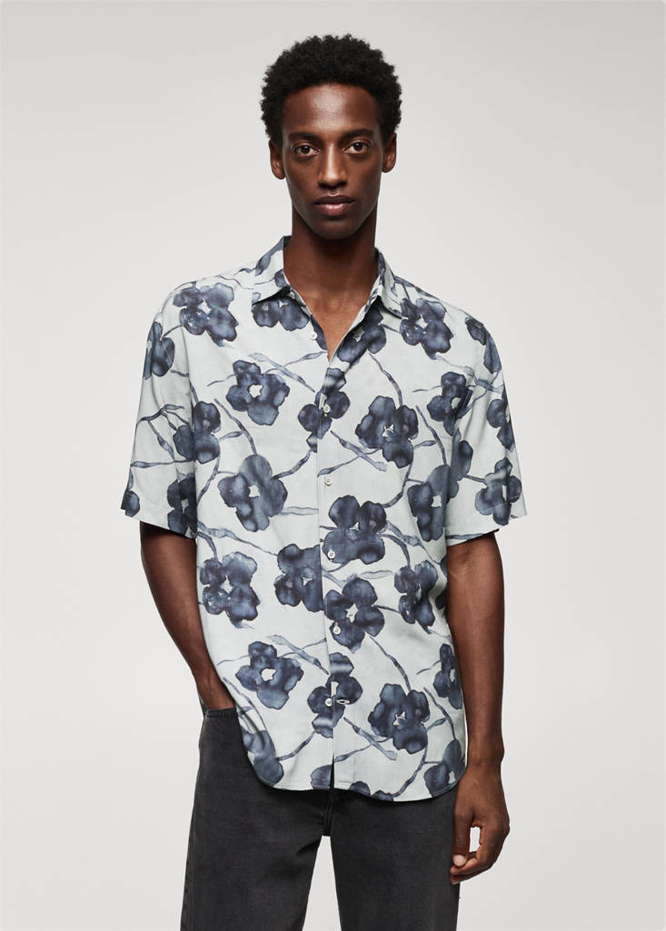 Regular fit. Fluid fabric. Flowers print. Short sleeves. Washing in cold water is recommended. Classic collar. Rounded base. Front closure with buttons