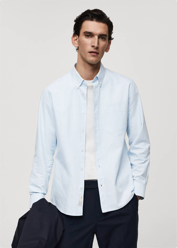 ESSENTIALS: Made to last. The aqua green model is an online exclusive. Regular fit. Bengal stripe design. American button-down collar. Patch pocket on the chest. Long sleeves with buttoned cuffs. 100% cotton fabric. Front closure with buttons. Rounded base