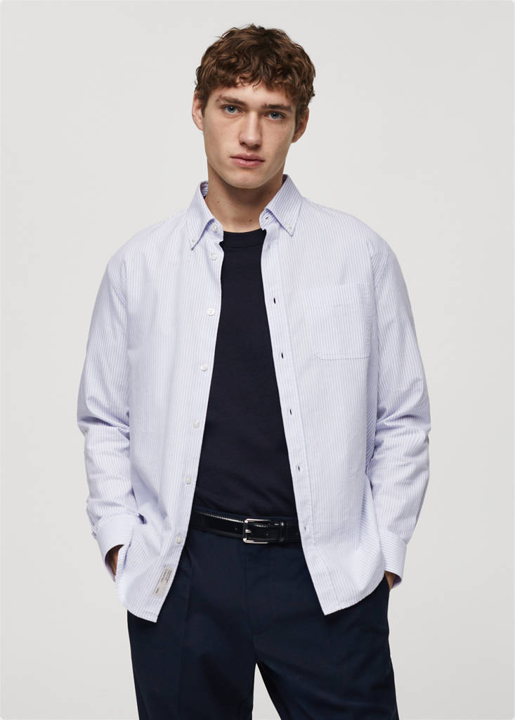 ESSENTIALS: Made to last. The aqua green model is an online exclusive. Regular fit. Bengal stripe design. American button-down collar. Patch pocket on the chest. Long sleeves with buttoned cuffs. 100% cotton fabric. Front closure with buttons. Rounded base