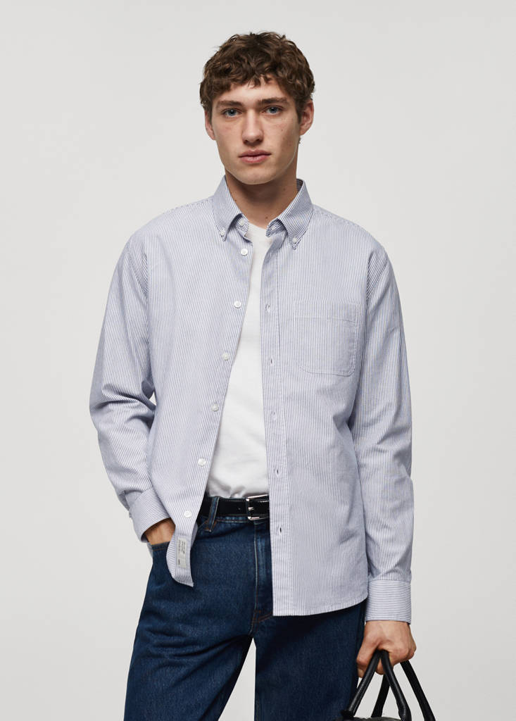 ESSENTIALS: Made to last. The aqua green model is an online exclusive. Regular fit. Bengal stripe design. American button-down collar. Patch pocket on the chest. Long sleeves with buttoned cuffs. 100% cotton fabric. Front closure with buttons. Rounded base