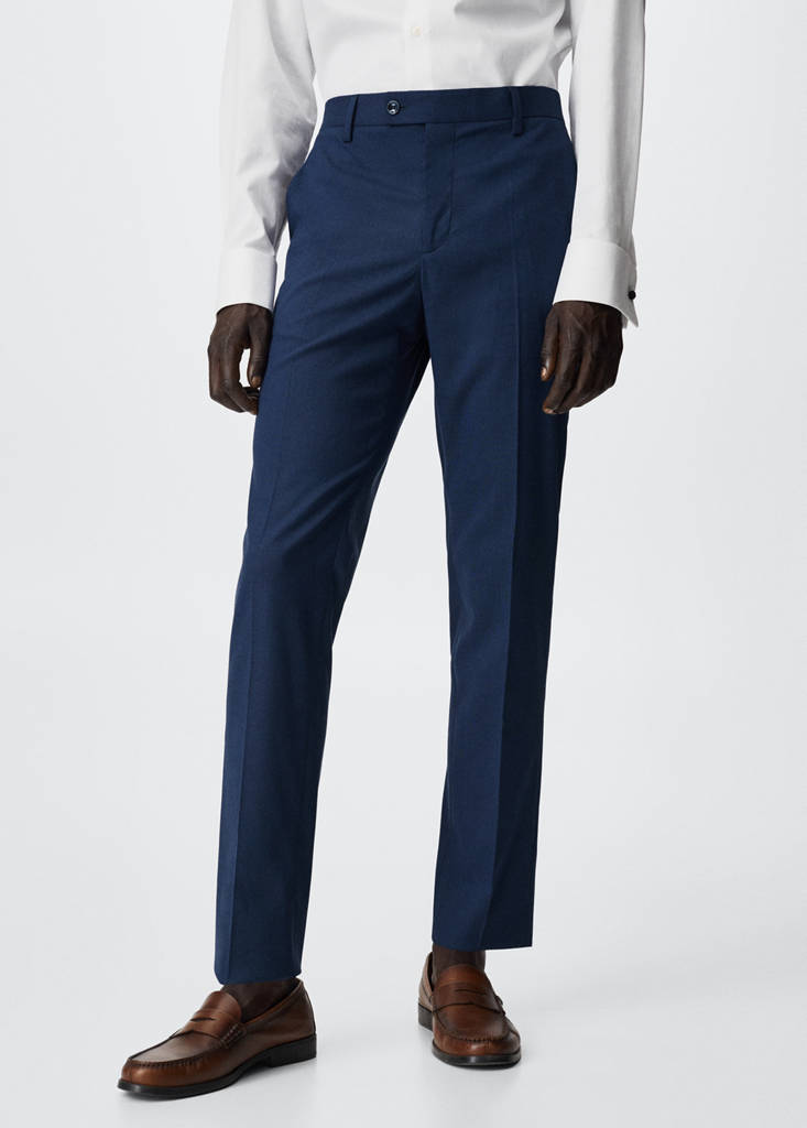 Tailored line. Slim fit. Lightweight fabric. Structured fabric. Belt loops. Two side pockets. Two welt pockets with button at the back. Concealed button, hook and zip fastening