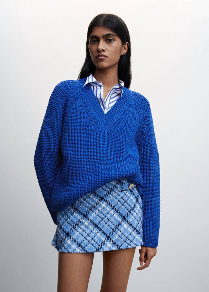 Chunky-knit V-neck sweaterPrice historyInitial price struck through [kr 599,00 ]kr 599,00Current price [kr 479,00 ]kr 479,00-20 %Select a colourVibrant blueLarge garment - Choose one size down from the usualSelect your sizeXXSNot available. I want it!XSNot available. I want it!SNot available. I want it!MNot available. I want it!LNot available. I want it!XLNot available. I want it!XXLNot available. I want it!Notify meThick knitted fabric. Cotton-blend fabric. Oversize design. Straight design. V-neck. Long sleeve. Cable knit finishDetails, composition and careStore availability