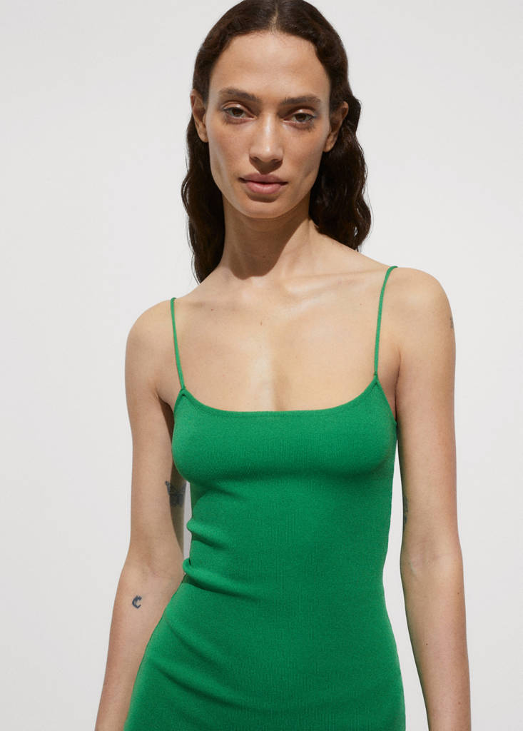 Top seller!Short knitted dressPrice historyInitial price struck through [kr 399,00 ]kr 399,00Second price struck through [kr 269,00 ]kr 269,00Current price [kr 99,00 ]kr 99,00-75 %Select a colourGreenSelect your sizeXXSNot available. I want it!XSSNot available. I want it!MNot available. I want it!LNot available. I want it!XLNot available. I want it!XXLNot available. I want it!DimensionsAddFine knit fabric. Short design. Square neckline. Thin straps. Festival Season. Fitted designDetails, composition and careStore availability