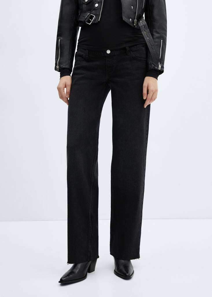 Denim-style cotton fabric. Wide-leg design. Low waist. Belt loops. Five pockets. Elasticated waistband. Soft elastic at front side waistband for added comfort and support the growing bump. No Fastening. Decorative button. Inseam 78 cm. We recommend you buy your usual size. Provides comfort and freedom of movement. Maternity
