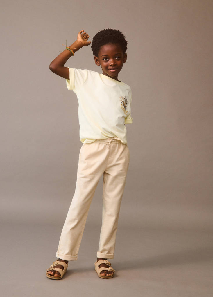 Stoffblanding av lin og bomull. Langt design. Rett design. Elastisk midje. Snorrelukking