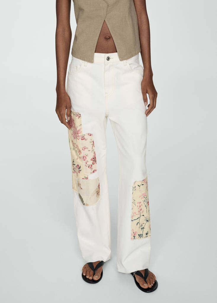 Dżinsy o prostym kroju z łatami w kwiaty