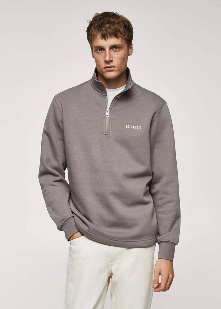 Regular fit. Tkanina z mieszanki bawełny. Wyhaftowany napis na piersi. Półgolf z zapięciem na zamek. Długie rękawy z elastycznymi mankietami. Prosty dół. Podszewka z czesanej bawełny