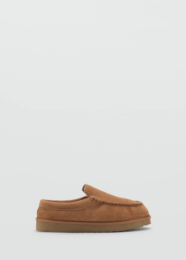 W stylu chodaków. Zamsz. Wnętrze z polaru. Stębnowane detale. Gumowa podeszwa. Zaokrąglony nosek