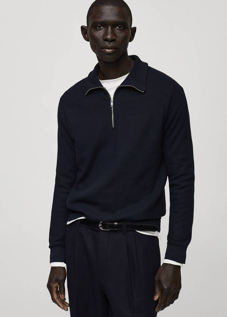 Sweter z drobną teksturą i zapięciem na zamek pod szyją