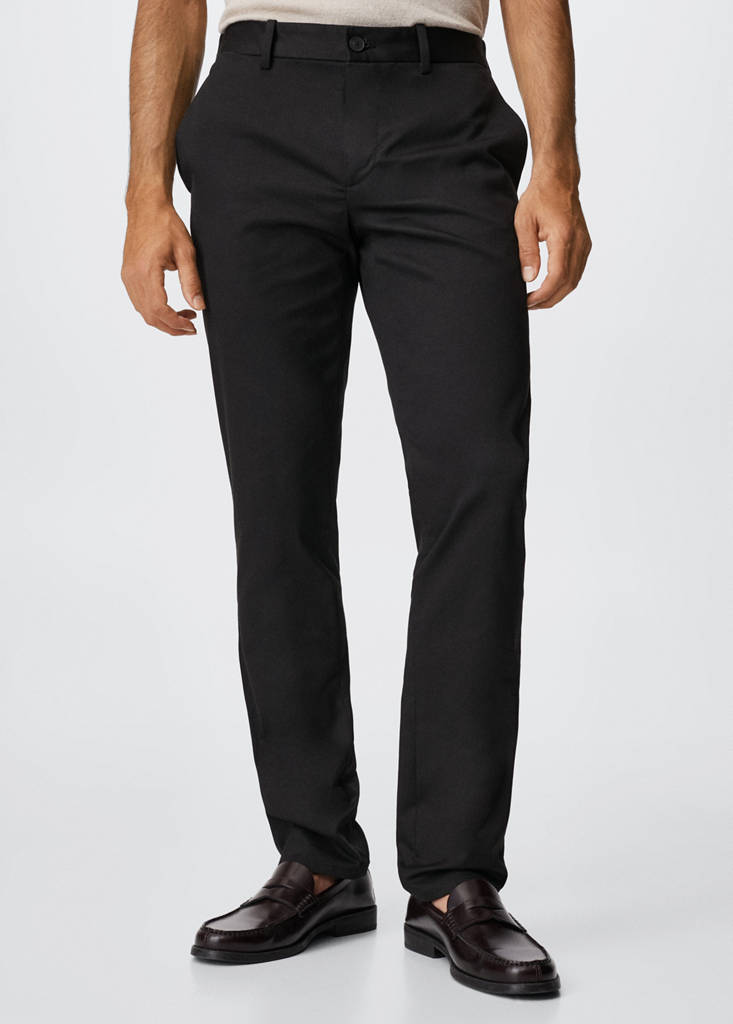 Kolekcja Basics. Slim-fit. Tkanina mieszana ze zrównoważoną bawełną. Tkanina o skośnym splocie. Styl chinos. Szlufki. Zapięcie na suwak i guziki. Dwie kieszenie boczne. Dwie wpuszczane kieszenie z tyłu. Te spodnie są dostępne w rozmiarach z dodatkowymi 5 cm na długość, dzięki czemu zachowują oryginalny fason przy każdym wzroście. Model ma 183 cm wzrostu i nosi rozmiar 42