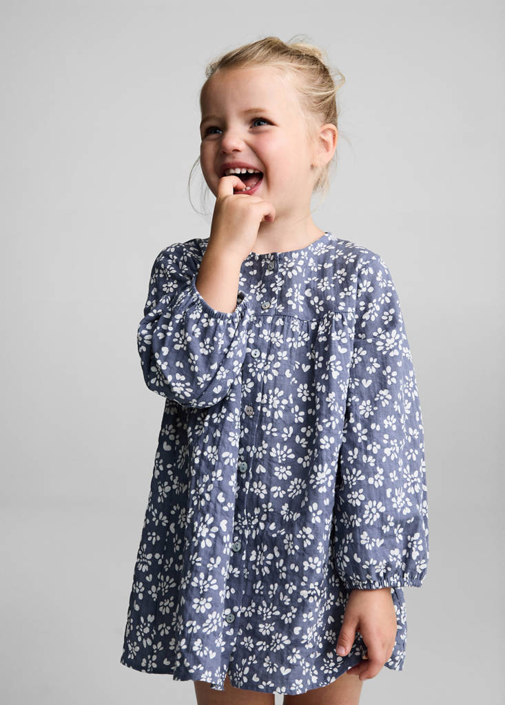 Tkanina z bawełną. Prosty krój. Projekt krótki. Kwiatowy wzór. Zapięcie na guziki z przodu