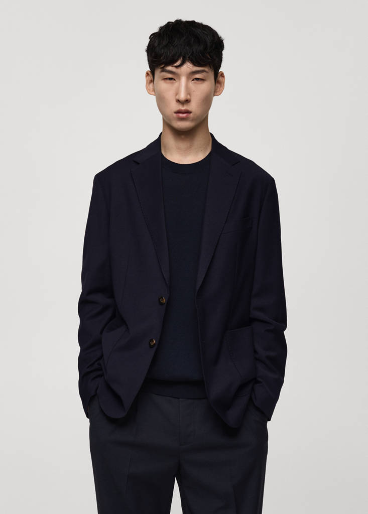 Blazer de lã slim fit com bolsos