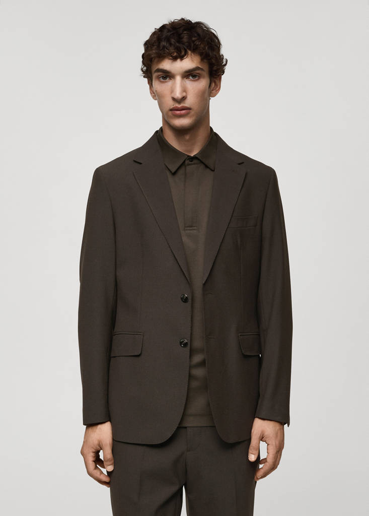 Coleção Performance. Tecido mistura de lã. Wrinkle free: tecido resistente aos vincos. Comfort Stretch: tecido elástico que proporciona um extra de conforto. Slim fit. Bolso de debrum no peito. Dois bolsos de aba na parte da frente. Bolsos interiores. Termorregulador: Este tecido oferece uma ótima respirabilidade para manter a temperatura corporal estável. Lavável à máquina a 30º. Gola de lapela com corte. Abertura dupla na parte de trás. Comfort: Esta peça oferece total liberdade de movimentos e recupera a sua forma original. Fecho frontal com botões. Manga comprida abotoada