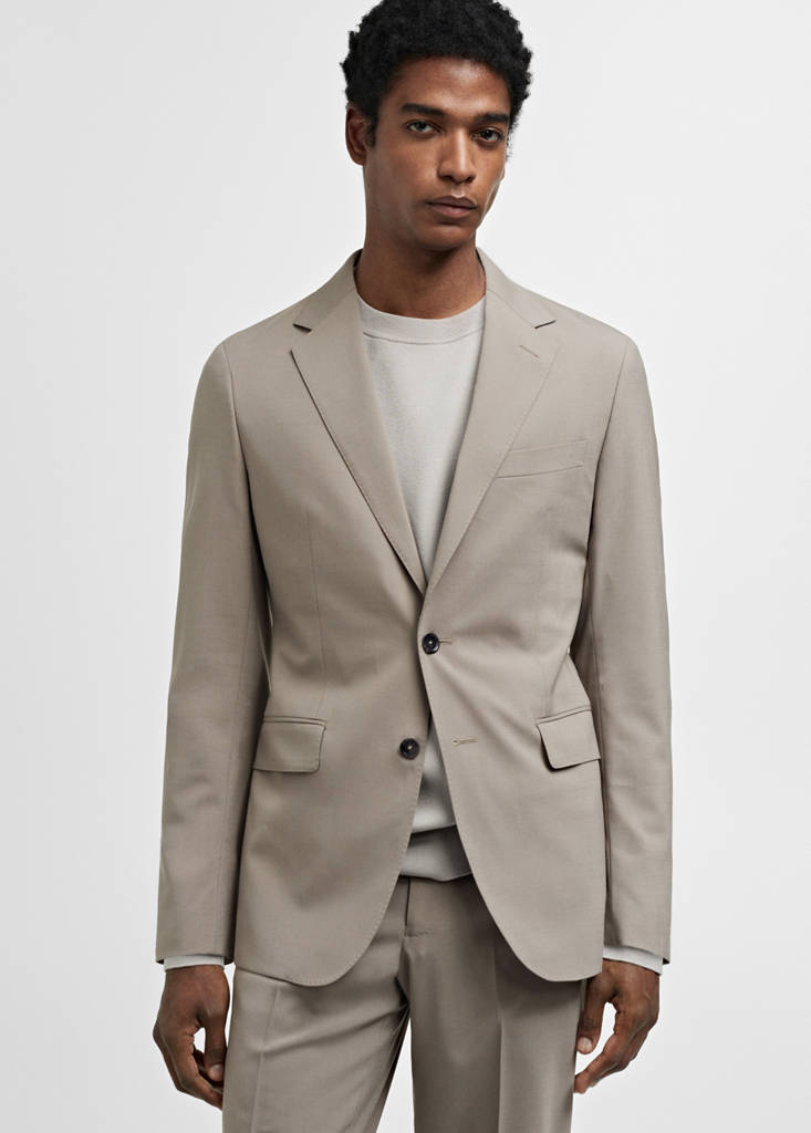 Coleção Performance. Lavável à máquina. Four way stretch: elasticidade em todas as direções. Proporciona um extra de conforto ao seu dia a dia graças à sua flexibilidade. Slim fit. Tecido mistura de lã. Lapelas com entalhe. Bolso de debrum no peito. Dois bolsos de patch na parte da frente. Abertura dupla posterior. Barra reta. Termorregulador: Este tecido oferece uma ótima respirabilidade para manter a temperatura corporal estável. Manga comprida abotoada. Fecho frontal com botões