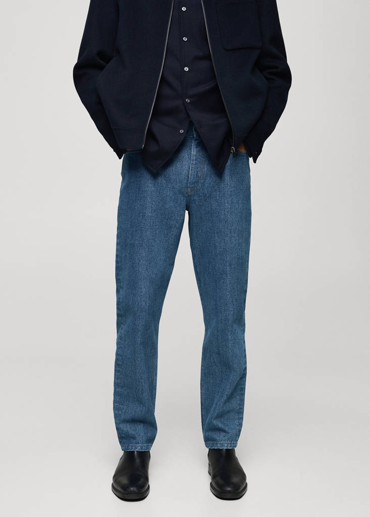Slim fit. Tecido de algodão. Lavagem média. Passadores para cinto. Bolso porta-moedas. Dois bolsos de debrum na parte da frente. Fecho de zíper e botão. Dois bolsos de patch na parte de trás. Coleção Selection