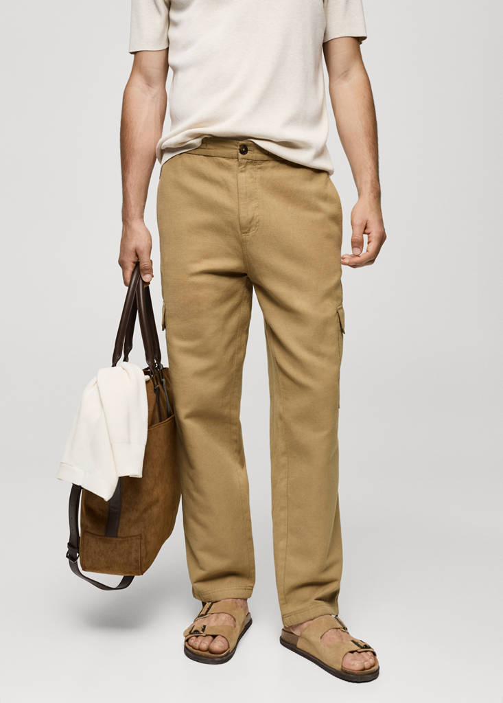 Calças cargo de algodão e linho