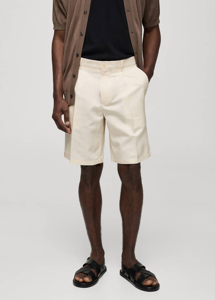 Calções com mistura de linho e pinças