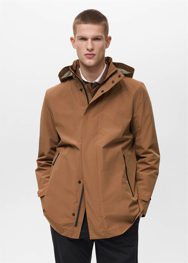 Coleção Performance. Coolmax® é um tecido especial que ajuda a repelir a humidade da pele, o que, em climas frios, permite manter o corpo seco e quente; em climas quentes, destaca-se pela sua leveza e frescura. Comfort Stretch: tecido elástico que proporciona um extra de conforto. Respirável: Este tecido ajuda a regular a temperatura corporal ao permitir que se liberte a humidade. À prova de vento: Este material durável oferece proteção contra o vento para um maior conforto no estilo de vida ao ar livre. À prova de água: Este acabamento durável impede que a água atravesse o tecido, o que proporciona a melhor proteção possível contra a chuva. Termorregulador: Este tecido oferece uma ótima respirabilidade para manter a temperatura corporal estável. Capuz removível. Fecho de correr à frente termosselado repente de água e botões de pressão. Manga comprida com presilhas ajustáveis. Dois bolsos de debrum à frente e fecho de correr repelente de água. Barra reta. Sem forro interior. Costuras interiores com reforço termosselado
