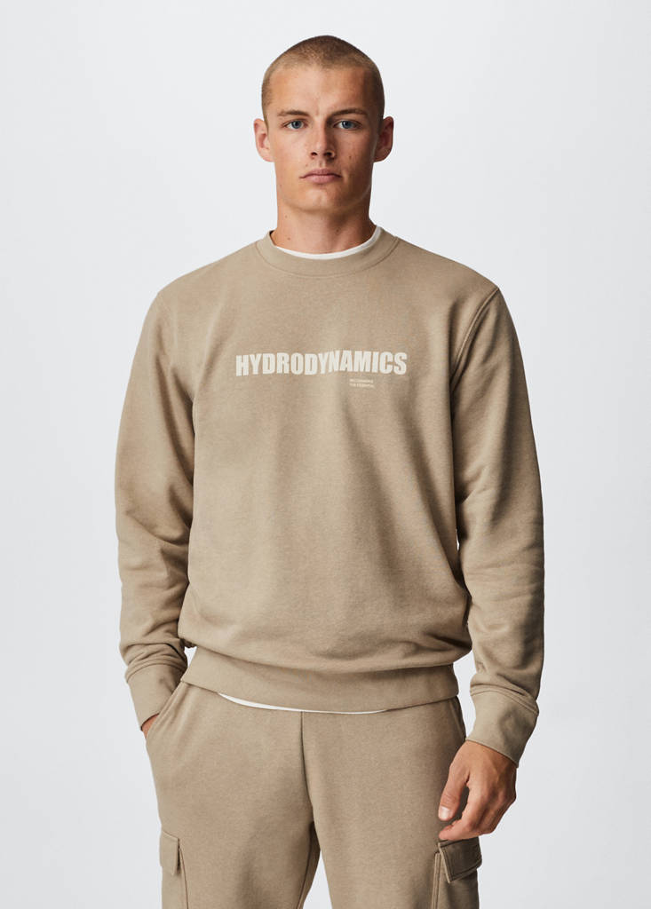 Regular fit. Tecido de mistura de algodão sustentável. Tecido de felpa. Gola redonda. Manga comprida. Mensagem estampada à frente. O modelo mede 183 cm e veste um tamanho M