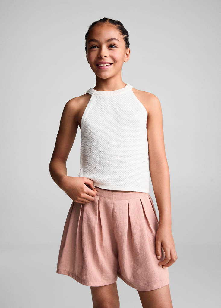 Design curto. Design reto. Cintura com elástico. Sem fecho