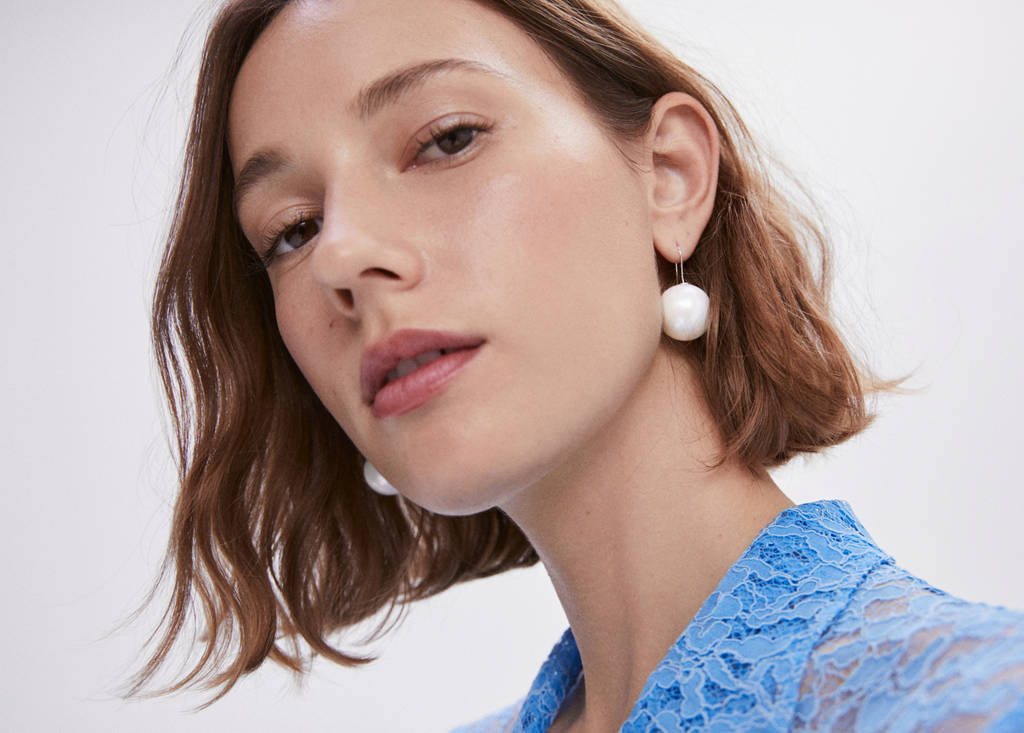 Desenho comprido, missangas de cristal, fecho metálico de pressão, coleção de festa e cerimónia.