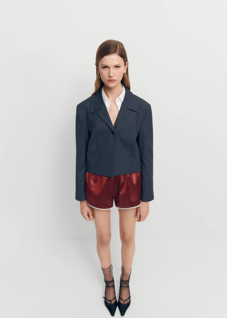 Tecido fluido. Tecido acetinado. Design curto. Design reto. Cintura alta. Dois bolsos laterais. Cintura com elástico. Sem fecho. Ribetes em contraste. Corte lateral. Coleção festa, cerimónia e comunhão. Coleção Selection